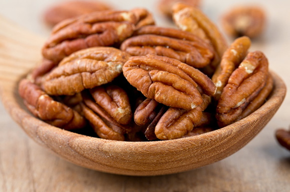 ”A noz-pecã é repleta de nutrientes – contendo 19 diferentes vitaminas e minerais, assim como antioxidantes.” disse Britni Thomas. ”A gordura monosaturada da noz-pecã pode ajudar a melhorar seu colesterol.” Ela também contém 3 vezes mais flavonoídes (um tipo de antioxidante) do que as amêndoas e 10 vezes mais do que as nozes!